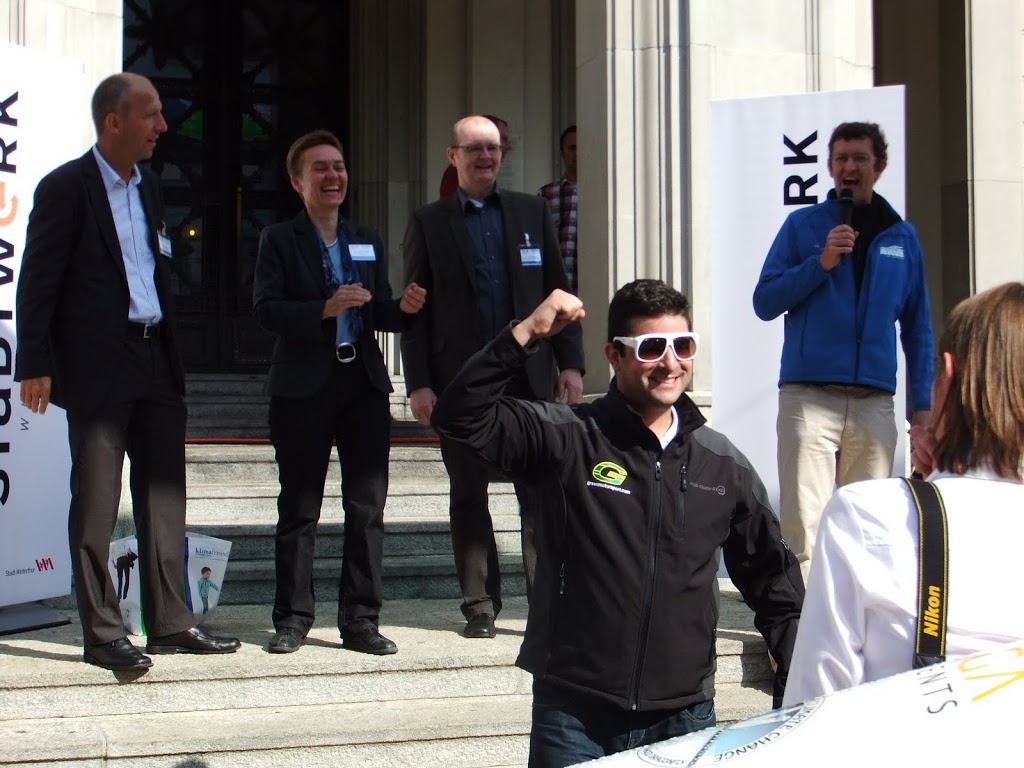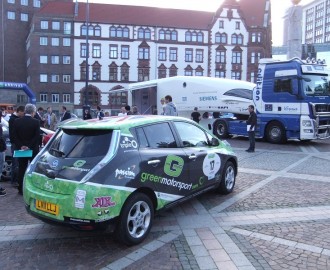 Made it to Gelsenkirchen from Zolder race track! Arrived at 1.00am! No plug socket, but managed to track down a plug socket by 4am, had to sleep in the car. Managed to get to all the meetings on time but no sleep!! Also with some help managed to load the battery with just the correct amount of energy to reach the next stop in Dortmond! A big thanks to the people who helped me plug the car in to reach the next step! You saved me!! :0